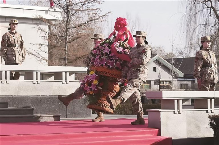 纪念大会在雄壮的国歌声中拉开帷幕。鲜艳的五星红旗冉冉升起,少先队员们以嘹亮的歌声唱响《我们是共产主义接班人》,稚嫩童声里满是对英烈的敬仰与对未来的憧憬。伴随着深情的《献花曲》,刘胡兰民兵班队员迈着整齐步伐,向烈士纪念碑敬献花篮。全体与会人员肃立默哀、鞠躬致敬,随后依次瞻仰烈士墓并敬献鲜花。