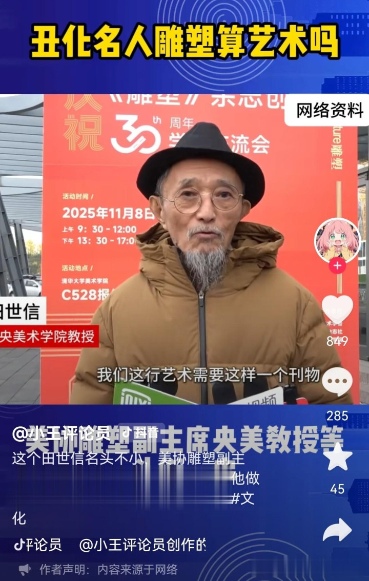 这些打着"艺术创新""学术探索"幌子的作品,本质上是毫无底线的恶意冒犯。艺术从来不是脱离社会公序良俗的肆意妄为,创作者更不应沦为逐名逐利、谄媚西方的工具。田世信的行为暴露了部分所谓"专业艺术家"的价值迷失——为博眼球、获洋奖,不惜背弃文化良知,践踏民族精神符号,沦为历史虚无主义的传声筒。秋瑾等英烈是民族解放的先驱,是刻在民族骨血里的精神图腾;老子等先贤是中华文化的精神标识,这些共同的历史记忆和文化符号,绝不是可供随意恶搞的素材。