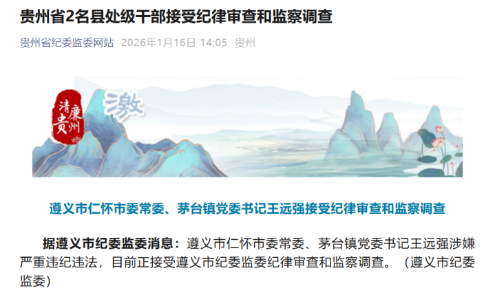 遵义市仁怀市委常委、茅台镇党委书记王远强涉嫌严重违纪违法,开云app在线体育官网目前正接受遵义市纪委监委纪律审查和监察调查。