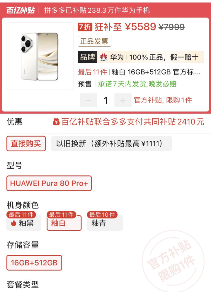 综合来看,华为Pura 80 Pro+并不是那种只靠某一个卖点吸引人的机型,而是把屏幕、性能、影像、续航、通信和系统体验,整合成了一种“用着顺、看着爽、拍着稳”的整体感受,它适合那些不想被参数绑架、却又对体验有要求的用户,应用到日常生活之中,绝对是可以给你带来出色的体验感,更为关键的是,就这款华为旗舰在价格层面的下调幅度也是很大的,参考到如今电商平台中的价格,16GB+512GB的内存规格则是出现了2410元的大降价加持了。
