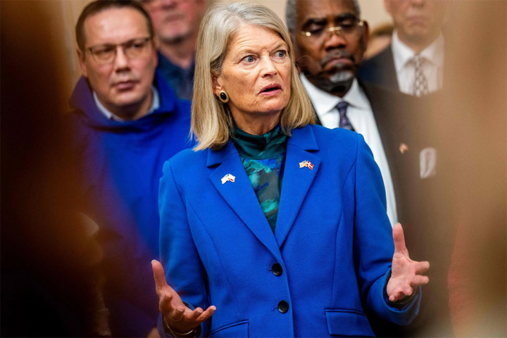 当地时间1月16日,美国参议员莉萨·穆尔科斯基在丹麦哥本哈根与丹方会晤后举行新闻发布会。法新社