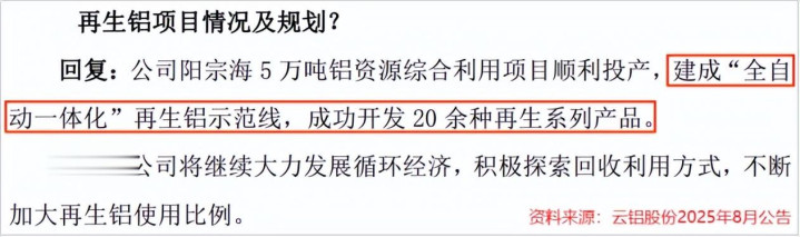 在安逸面前绿电铝上风的同期,云铝股份也运行布局下一赛说念——再生铝,进一步扩大绿色河山。