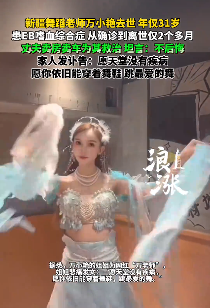 1月14日,31岁新疆舞蹈老师万小艳因患EB嗜血综合症不幸离世,从确诊到生命终结仅两个多月。为救治妻子,丈夫毅然卖房卖车,倾尽所有仍未留住爱人,坦言不后悔。
