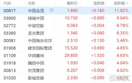 受消息影响,今日港股市场内房股集体走强,中国金茂涨超11%,绿城中国涨超9%,龙光集团、建发国际集团、融创中国等跟涨。