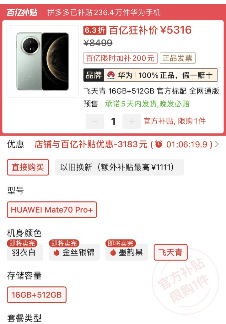总的来说,华为Mate 70 Pro+并不是那种靠一两个参数“博眼球”的产品,而是一台把性能、屏幕、影像、续航、通信和耐用性,全都认真打磨过的高端旗舰,它不吵不闹、却样样靠谱;不靠噱头、却处处贴心!如果你想要的是一台能陪你用很久、用得舒服、用得安心的旗舰机型,就这款华为手机绝对是很值得入手的,要知道,如今就在价格上所出现的下调情况也是很严重的,参考到如今电商平台中的价格,其中16GB+512GB的内存规格已经是下调了3183元了。